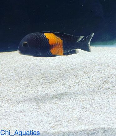 - Tropik akvarium üçün nadir və rəngarəng Afrika siklidi – qara bədən üzərində parlaq narıncı “kəmər” ləkəsi ilə seçilir.