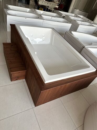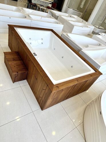 Ağ akril vannalı, taxta karkasla örtülmüş Jakuzi tipli vanna