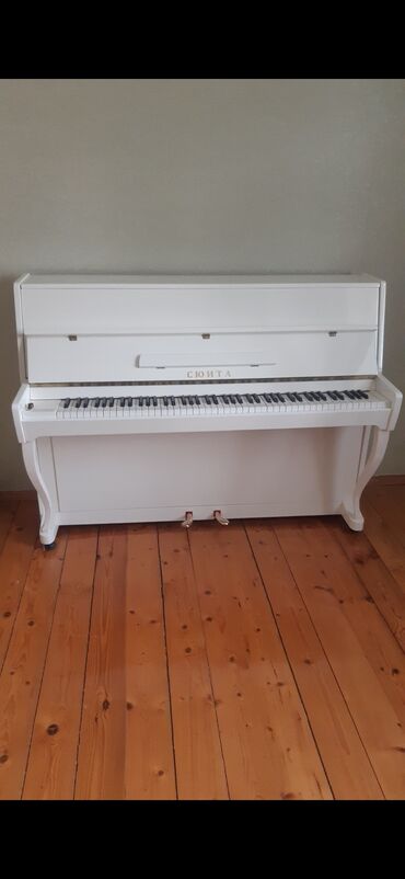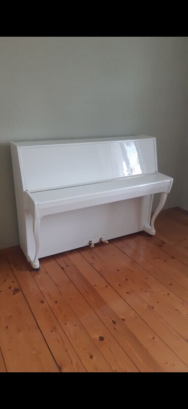 Pianino kiçik ölçülü fiqurnu ayaqlı 3 pedallı 3cü pedalı əl ilə idarə olunur ağ parlaq gözəl təmiz səslənməsi var hazır köklənib