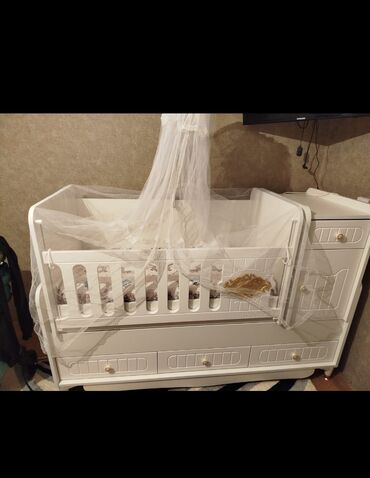 - Beşik korpusu dayanıqlı materialdan, rahat yuvarlaq kənarlar.