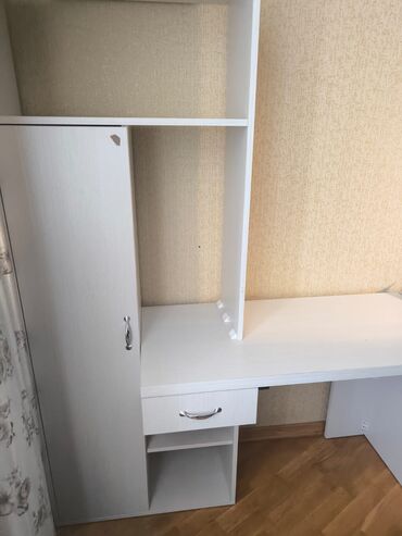 Ağ rəngli funksional iş masası və kitab rəfi komplekti. 2 dene