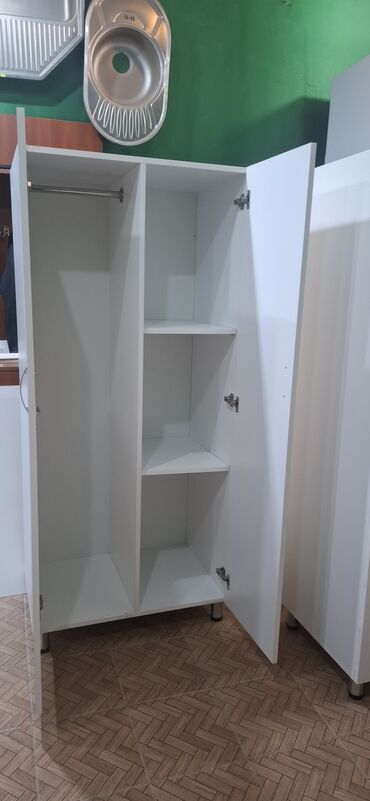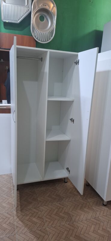 - Sol bölmə: geyim asmaq üçün metal karkas asılqan borusu və alt hissədə geniş yer