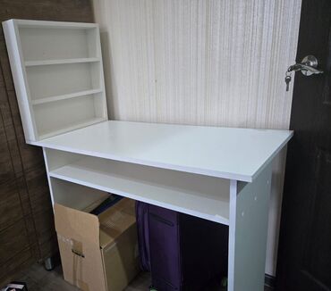 LA MİNİ – Laconic & Minimalism iş/oxu masası və rəf dəsti - Rəng: ağ (rəng seçimi mümkündür) - Ölçülər: Dərinlik 50 sm x Hündürlük 75 sm x Uzunluq 100 sm - Dizayn: sadə və funksional; üst hissə iş...