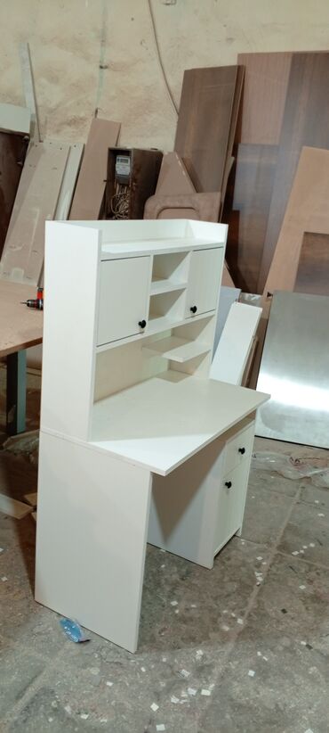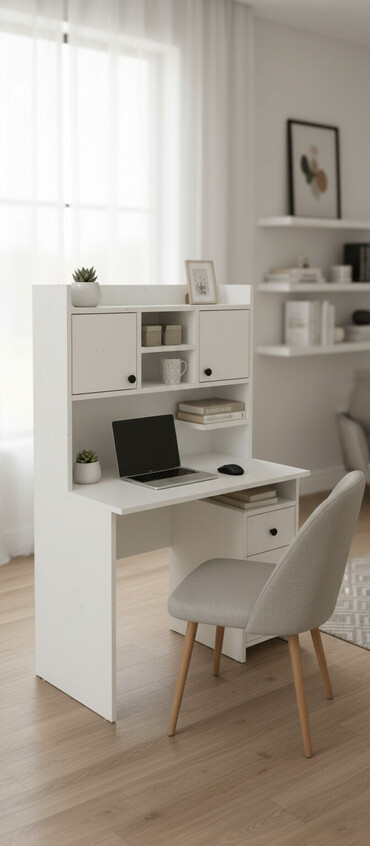Ağ rəngli kompyuter/iş masası – yığcam və funksional dizayn.