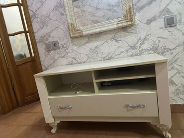 - Konsol: dekorativ oyma ayaqlı, parlaq krem/ağ tonlarda. Üst səth genişdir, salon, dəhliz və ya yataq otağı üçün uyğundur.
