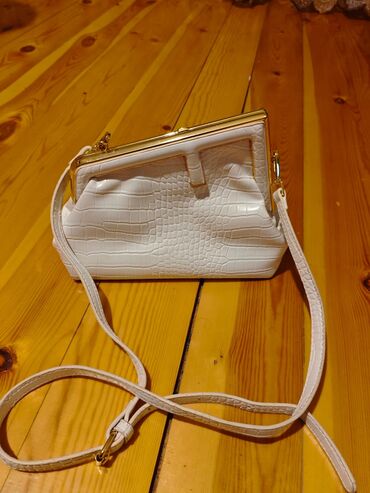 Ağ rəngli, krokodil teksturalı qadın çantası