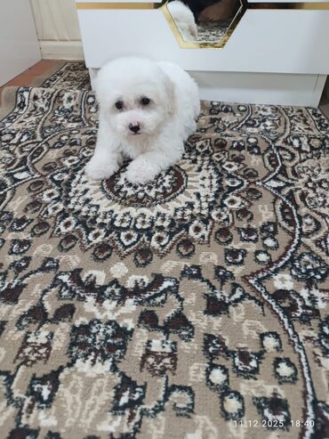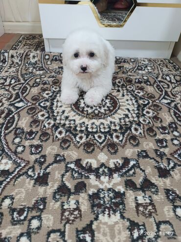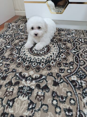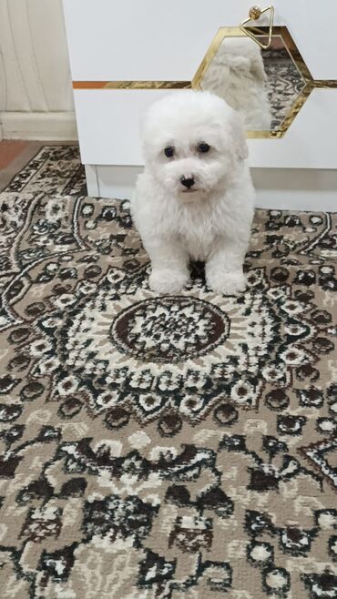 Ağ, qıvrım tüklü, kiçik ölçülü it balası. - Cins tipi: oyuncaq ölçülü, ev şəraitinə uyğun, allergenə nisbətən az saç tökən quruluş - Xüsusiyyətlər: çox mehriban, uşaqlarla və mənzil şəraitində raha...