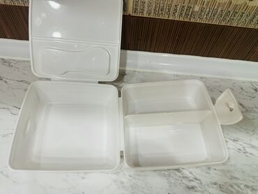 Uşaq yemək qabı – 4 AZN - Kompakt kvadrat forma, açılıb‑bağlanan qapaq - Bir neçə bölməli daxili quruluş: sendviç/ burger, meyvə-tərəvəz və qəlyanaltılar üçün ayrı bölmələr - Qaşıq və çəngəl dəsti...
