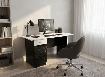 Ağ rəngli iş masası – kompakt və funksional dizayn. - Geniş düzbucaqlı iş səthi: laptop, monitor və yazı ləvazimatları üçün kifayət qədər yer. - Sağ tərəfdə saxlama bloku: - Üst hissədə açıq...