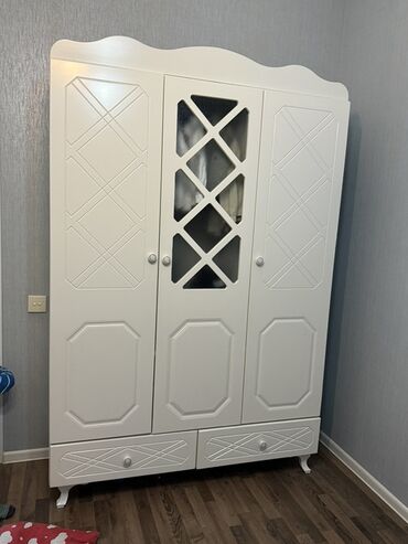 Ağ rəngdə olan bu qarderob, yataq otağına zəriflik qatır. Birbaşa istehsaldan satisdi 160*200*45olcude 4qapili dolab cemi 260azn catdirma əlavə ödənişlə mümkündür.reng seçimi var (acar,dekor elave...