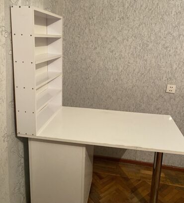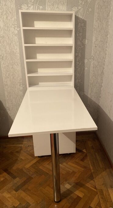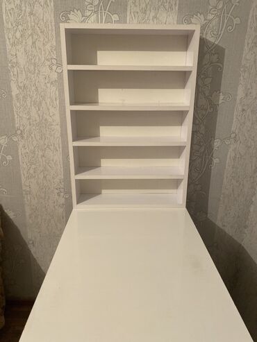 Ağ rəngli iş/oxu masası və yan dolablı kompakt modul. 7,8 ay çəkiliş üçün istifadə olunub,yazı masası kimi istifadə etməmişəm Xüsusiyyətlər: - Masaüstü: 120 sm uzunluq, 45 sm en, 75 sm hündürlük – ...