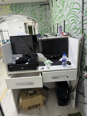 Resepsion masası satılır. Butik, gözəllik salonu, ofis və mağaza üçün uyğundur. Ağ rəng, qızılı detallı tutacaqlar. Çəkəc və dolabları var, çox rahat və səliqəlidir. Az istifadə olunub, əla vəziyyə...