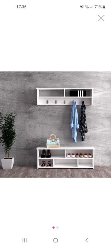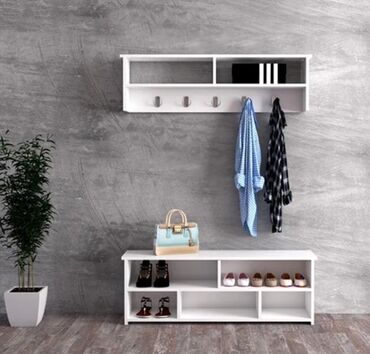 EndirimsizAğ rəngdə giriş/koridor üçün dəst: asma paltar asqısı və ayaqqabı rəfi-banki.