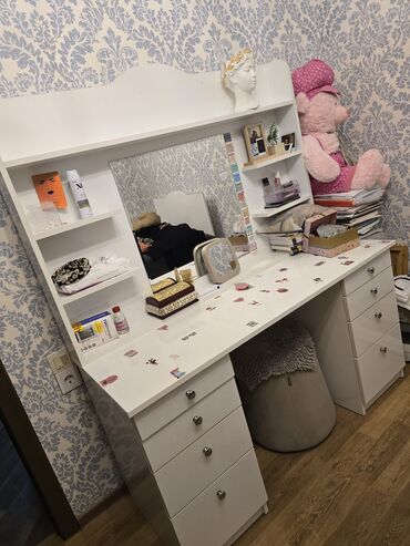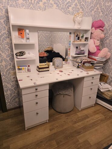 Ağ rəngdə böyük makiyaj/iş masası və güzgülü üstlük