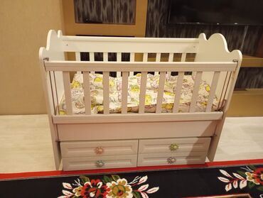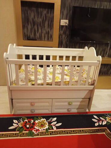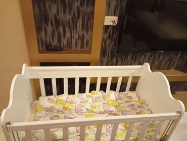 Uşaq beşiyi – Ortopetık doşeyı var beşık çıxarılıb saxlanılır geç bor problemı yoxdu uşaq yatmır dıye satılır - Rəng: ağ - Material: laminat/MDF əsaslı, bərk konstruksiya - Yanları barmaqlı, nəfəs...