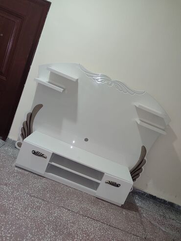 Ağ rəngli TV stendi və dekor paneli unvan Bineqedi Gencler seherciyi qiymet 25azn