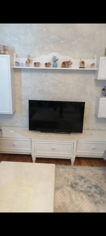 Ağ rəngdə TV stendi və divar rəfləri dəsti