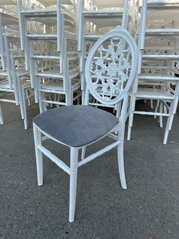 Ağ rəngli, zərif dizaynlı banket/ziyafət stulları. Xüsusiyyətlər: -
