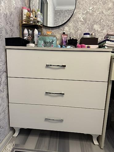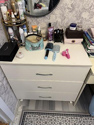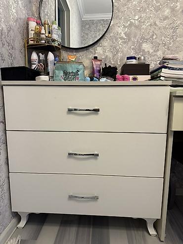 Esyalar ayri-ayriliqda satilir. Skaf 80 azn, kicik cekmece 50 azn, stul 70 azn.