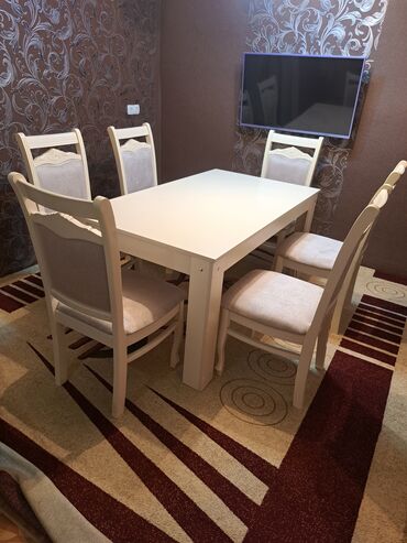 Komplekt şəklində təqdim olunur: masa + 6 stul.