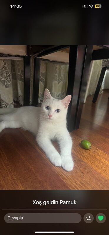 Mətn: Pişik balaları ödənişsiz sahinləndirilir.. Şirin, 3 aylıq, ağappaq pişik balaları sahibləndirilir. Tam sağlam, çox oynaq və mehribandırlar. Ev şəraitinə tam öyrəşiblər (qum tərbiyəsi var). ...