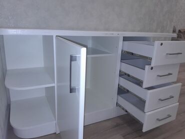 - Material: MDF/LDSP tipli ağ mebel lövhəsi, metal tutacaqlar