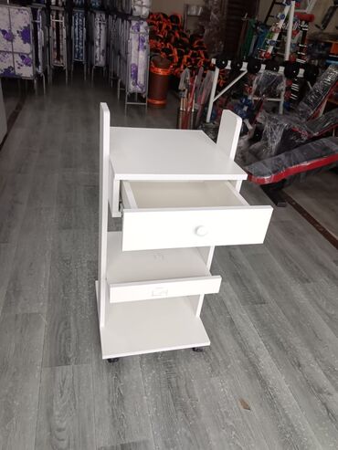 GüzgüsüzAğ rəngli çoxfunksiyalı servirovka/sehpa arabası