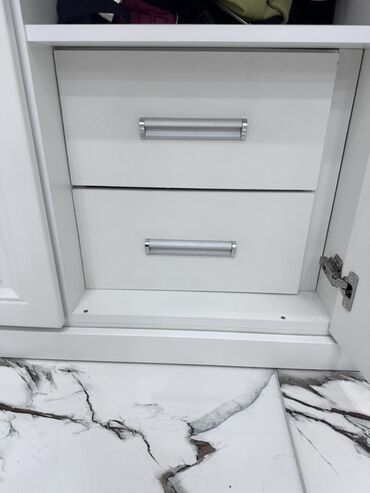 - Daxili quruluş: asılqan üçün bölmələr, rəflər və aşağı hissədə 2 ədəd geniş siyirmə (metal tutacaqlı)