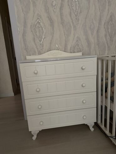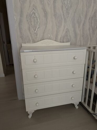 Mebel çəkməcə dəsti – Komod Qiymət: 130 AZN Model kodu: K-401 - Klassik dizaynlı, 4 geniş çəkməcəli komod - Zərif dekorativ tutacaqlar və qıvrımlı ayaqlar - Rəng: ağ - Düzbucaqlı, yığcam ölçülü ko...