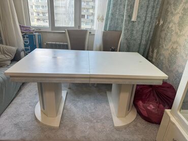 Ustunde ciziqlar var. kraska isi var.Ağ rəngli yemək/mətbəx masası - Klassik dizayn: yumşaq künclü düzbucaqlı stolüstü, əyri (queen anne tərzində) ayaqlar - Material: ağ laklı taxta/MDFlam stolüst...