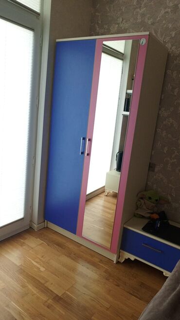 Ölçülər fotoşəkillərdəki miqyasdan göründüyü kimidir; hündür tipli, geniş istifadə sahəsi olan geyim dolabıdır.