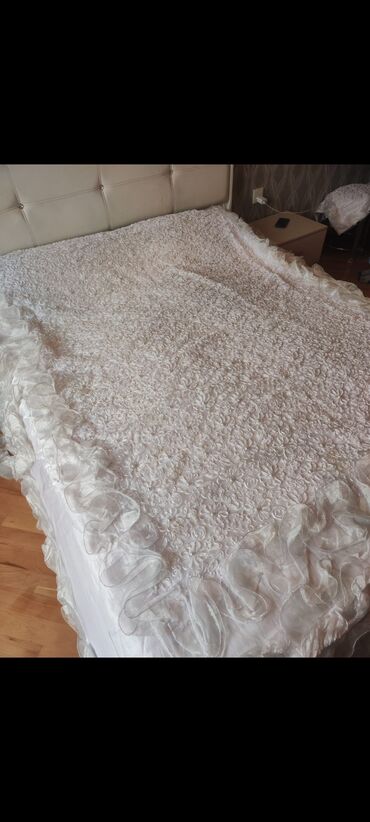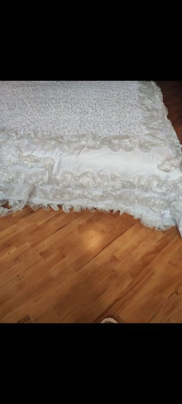 Ağ rəngli, zərif bəzəkli yataq örtüyü