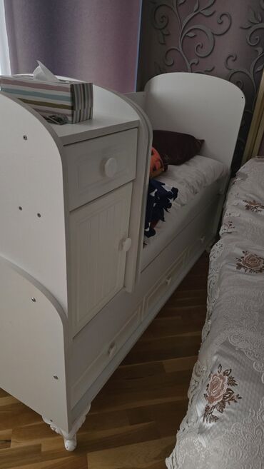 İdeal olaraq uşaq otağına, kompakt saxlama imkanları olan praktik seçim. Yataq, komod və alt çekmecə birlikdə monoblok quruluşda dizayn edilib.
