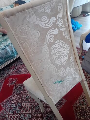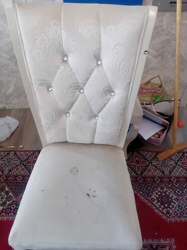 Ağ rəngdə klassik dizaynlı yumşaq yemək otağı stulu ustubde like zad ola biler 5 ədəd var qiymet 10azn 5inde goturen 40azn