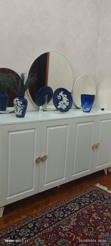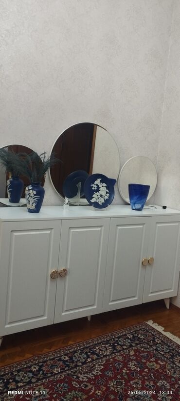 - Dairəvi güzgülərlə harmoniyada estetik kompozisiya yaradır (güzgülər görüntüdə var).