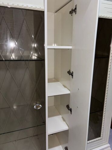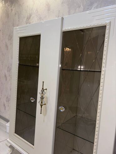 - Daxili hissə: şüşə raflı vitrin bölməsi (iki tərəfdə) – qab‑qaşıq, dekor əşyaları və kolleksiyalar üçün uyğundur