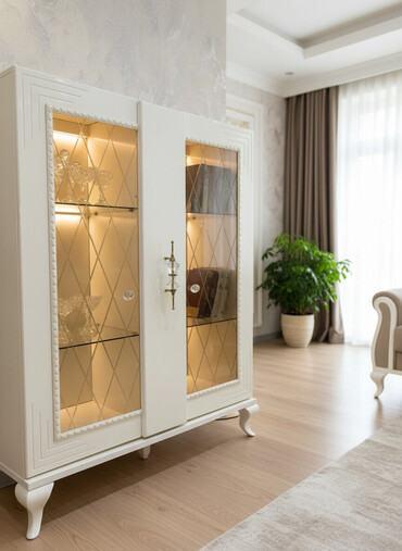 Ağ rəngdə klassik üslublu vitrin/dolab