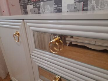 GüzgülüƏla vəziyyətdədir. heç bir qüsuru, cızığı, deffekti yoxdur. 2 ay işlənib. başqa evə köçdüyem üçün satıram. dəstin çox möhtəşəəm stoluda var. əla vəziyyətdədir. sacədə başqa evə köçdüyüm üçün stolun ayaqların açmışam. Ağ rəngli klassik üslubda böyük qüzlü komod (qüzgüsü fə var isyə görə tax billlərsiz) və ona uyğun yumşaq oturacaqlı stol/stul.