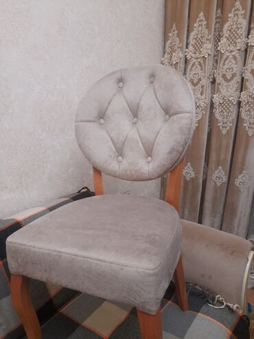 - Yumşaq oturacaq və bel hissəsi, açıq boz (bej-boz) məxməri/parça ilə üzlənmiş.