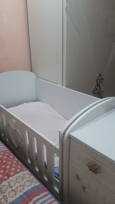 - Beşiyin içində uyğun ölçülü döşəkcə/parça örtük görünür.