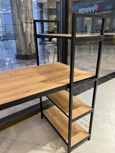 Mağaza üçün ikiüzlü rəflər - Material: qara metal karkas və ağac teksturalı lövhələr - Konstruksiya: modul tipli, iki tərəfli istifadə üçün nəzərdə tutulmuşdur ,hər bölmədə çoxsəviyyəli rəflər - ...
