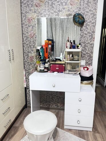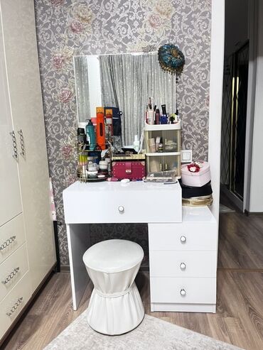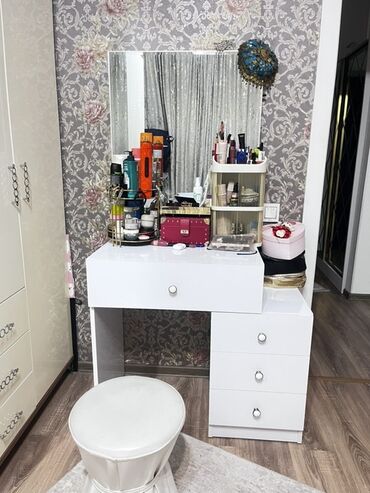 Yataq otağı və ya qarderob zonası üçün funksional və estetik makiyaj küncü yaratmaq üçün idealdır. Dəst: masa, güzgü və taburet.