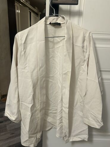Öz qiymeti 170 AZN alınıb. Satılır 60 AZN!! Ağ rəngli qadın pencəyi - Model: uzun kəsim, klassik açılan yaxa (laylapel), ön tərəfdə düyməli bağlanma (3 düymə). - Qol: 3/4 uzunluq effektli düz qoll...Giriş•Qeydiyyat