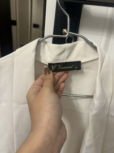 Öz qiymeti 170 AZN alınıb. Satılır 60 AZN!! Ağ rəngli qadın pencəyi - Model: uzun kəsim, klassik açılan yaxa (laylapel), ön tərəfdə düyməli bağlanma (3 düymə). - Qol: 3/4 uzunluq effektli düz qoll...