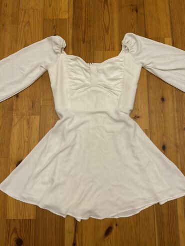 Ağ rəngli qadın paltarı - Rəng: qar kimi ağ - Model: bel hissədən