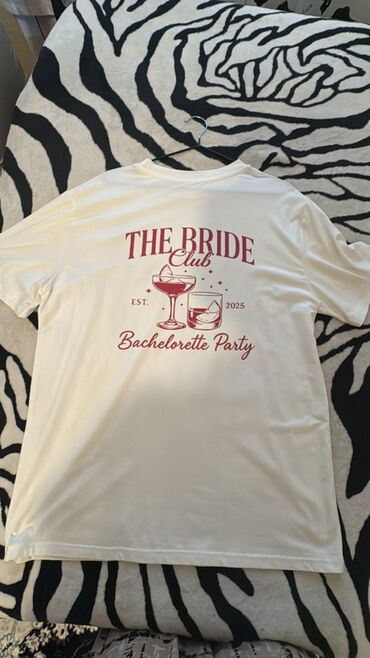 Ödənişli çatdırılmaÜnvandan götürməAğ rəngli qadın polo köynək – arxa hissədə “THE BRIDE Club – Bachelorette Party – EST. 2025” çapı, içki qədəhləri illüstrasiyası ilə. Ön hissədə kiçik qara at fiqurlu loqo, qısa qol, klassik polo yaxa və iki düyməli qapaq. Yüngül, hamar toxumalı parça; rahat oturuş və gündəlikdən tədbirə qədər uyğundur. Subaylıq gecəsi və gəlin komandası üçün tematik dizayn. Size qadın standart kəsim (təxmini M/L-ə uyğun görünür). Rəng: krem-ağ.