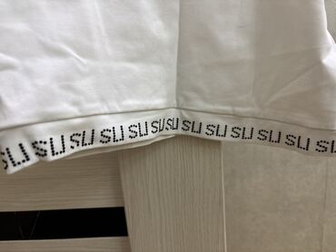 - Detal: alt ətək boyunca “SU” yazılı dekorativ naxış (xırda nöqtəli daş effektli print)