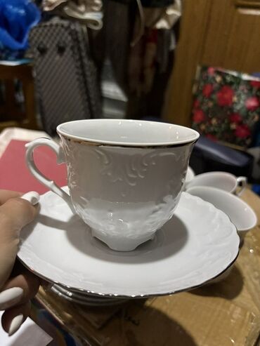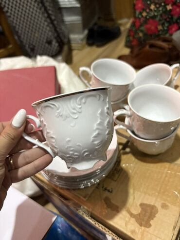 Çay fincanı dəsti – 6 nəfərlik - Material: nazik porselen/keramika görünüşlü. - Komplekt: 6 ədəd fincan + 6 ədəd boşqab (nəlbəki). - Dizaynlar: bir neçə floral variant. - Çiçəkli naxışlarla krem...