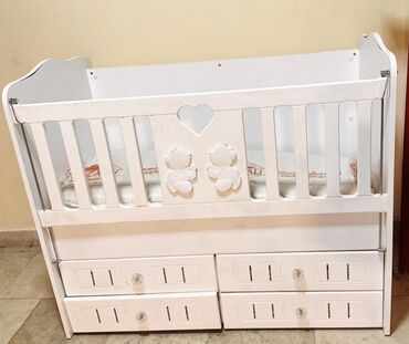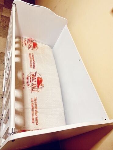 Oval və yumru formalı ağ uşaq beşiyi komplekt Uşaq yatağı az yatılıb yay qış üzlü matras(tək matras 170 AZN alınmışdı)üzərində 2 prostinya 2 ədəd yastıq yataq qırağı hörük və chikko firmasınnan fı...