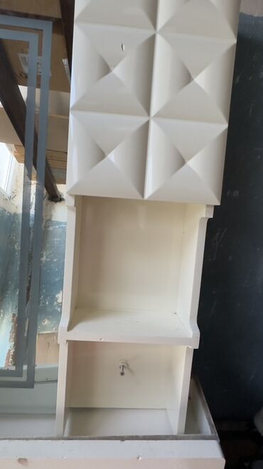 - Yan modul/raf: Açıq rəf bölmələri olan şaquli hissə, eyni 3D dekorla üst panel.
